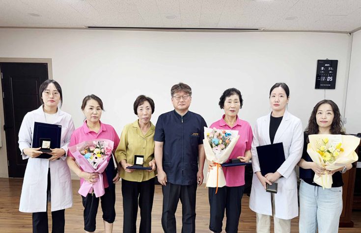 [2025.09] 장기근속 직원 시상식 페이지 정보 작성자 목포미즈아이 댓글 0건 조회 314회 작성일 25-09-12 10:00 목록 본문 선선한 바람이 불어오기 시작한 9월 우리 병원과 함께 오랜 시간 동행해주신 직원분들을 위한 장기근속자 시상식이 열렸습니다.올해는 10년 근속자 6명 5년 근속자 2명총 8명의 직원분들이 근속상을 받으셨습니다. 함께해주신 분들께는 감사의 마음을 담아 순금 골드바를 전달하였습니다.이번 시상식은 단순한 기념이 아니라, 직원 한 분 한 분의 시간과 열정이 모여 병원을 지탱해왔음을 다시 한번 느끼는 자리였습니다.앞으로도 함께 걸어갈 길을 기대하며, 다시 한번 진심으로 축하드립니다 다음글 [2025.07] 총무국장님 퇴임식 25.07.15 댓글 0 댓글목록 등록된 댓글이 없습니다.