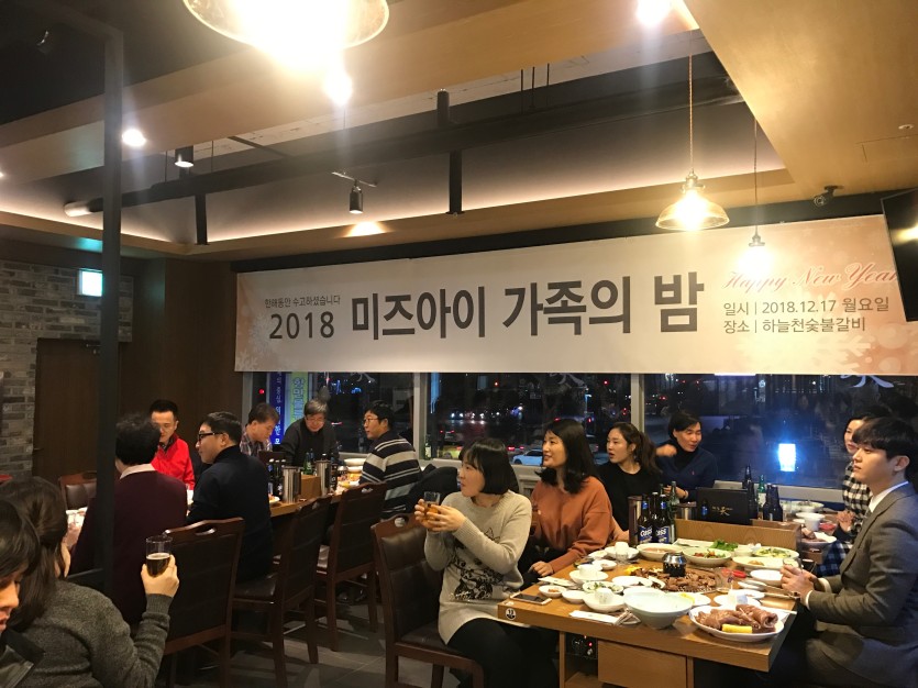 2018.12월 *미즈송년의 밤* 페이지 정보 작성자 미즈아이 댓글 0건 조회 5,703회 작성일 18-12-18 11:03 목록 본문 2018.12.17(월) 저녁 6시 30분에남악 '하늘천' 에서 '미즈아이병원 송년의 밤'을 마련하였습니다. 한 해를 뒤돌아보고 앞으로 다가 올 2019년 기해년 (己亥年)을 맞이하며선규근 원장님의 건배제의가 있었습니다. 올 한해 미즈아이병원을 사랑해주신 고객여러분께서 보내주신 성원에 감사드리며,미즈아이병원을 위해 수고해 주신 직원여러분들과 뜻깊은 시간을 함께해서 기뻤습니다.올 한해 감사했습니다.사랑과 기쁨이 가득한 연말 보내시고남은 2018年 마무리 잘하시길 바랍니다.2019년 기해년 (己亥年) 에도 많은 사랑 부탁드립니다.-미즈아이병원 직원 일동- 이전글 2018.12월 *장애인식교육* 18.12.20 다음글 2018.12월 *우수사원&우수팀 시상* 18.12.11 댓글 0 댓글목록 등록된 댓글이 없습니다.