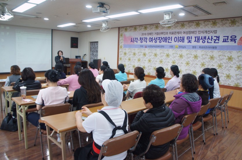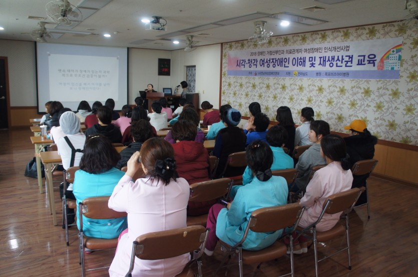 2018.12월 *장애인식교육* 페이지 정보 작성자 미즈아이 댓글 0건 조회 5,379회 작성일 18-12-20 16:39 목록 본문 12월 20일 목요일 9층 문화센터에서오후 2시 30분부터 한시간 동안전남여성장애인연대 주최로 열린 장애인식개선 교육이 있었습니다. 시각, 청각 여성장애인의 임신 및 출산에 대한 이해 교육과 장애인이 병원에 방문했을 때 대처방법 및 행동방안 등을 배울 수 있는 뜻깊은 시간이었습니다.모든 고객님들께서 만족하실 수 있는 서비스를 제공하는목포미즈아이병원이 되도록 노력하겠습니다. 이전글 2018.12월 *크리스마스 행사* 18.12.25 다음글 2018.12월 *미즈송년의 밤* 18.12.18 댓글 0 댓글목록 등록된 댓글이 없습니다.