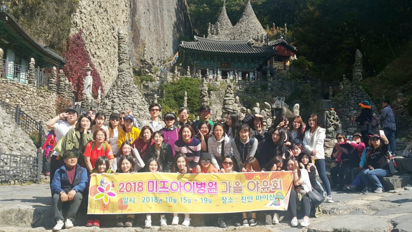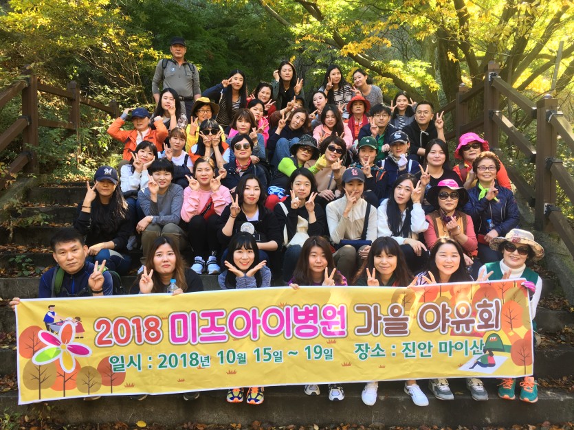 2018.10월 *전 직원 가을야유회* 페이지 정보 작성자 미즈아이 댓글 0건 조회 6,194회 작성일 18-10-22 11:08 목록 본문 2018.10.15, 2018.10.17, 그리고 2018.10.19총 3차로 나누어 전 직원 가을야유회를 다녀왔습니다. '전라북도 진안 마이산' 산행과 '장성 황룡강 노란꽃잔치'를 다녀오는 일정이었습니다. 산행동안은 살랑살랑 불어오는 가을바람 덕분에 시원한 시간을 가질수 있었고,장성 황룡강에서는 꽃 향기를 맡을 수 있는 좋은 시간을 가졌습니다. 오랜만에 떠난 야유회로 미즈아이 전 직원들이 힐링하는 시간을 가졌습니다. 이전글 2018.11월 *머니투데이 신문기사, '비용 아닌 투자…젊은 의료진 유출 없죠'* 18.11.01 다음글 2018.10월 *우수사원&우수팀 시상* 18.10.09 댓글 0 댓글목록 등록된 댓글이 없습니다.