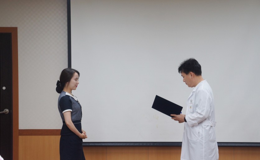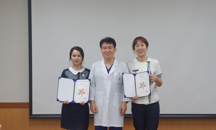 2018.6월 *우수사원&우수팀 시상* 페이지 정보 작성자 미즈아이 댓글 0건 조회 6,708회 작성일 18-06-12 15:36 목록 본문 2018.6.12 월요일 본원 9층 문화센터에서는 5월 우수사원&우수팀 시상이 있었습니다. * 5월 우수사원 : 문은실(원무팀) 5월 우수팀 : 산부인과 7병동 아름다운 미소만큼 항상 에너지 넘치는우리 선생님들 너무 축하드립니다. 앞으로도 밝은 에너지로 우리 고객님들께최상의 서비스를 드릴 수 있는 미즈아이병원이 되겠습니다. 이전글 2018.6월 *'어르신과 함께하는 효페스티벌'의료봉사* 18.07.02 다음글 2018.6월 *내부 직원교육* 18.06.09 댓글 0 댓글목록 등록된 댓글이 없습니다.