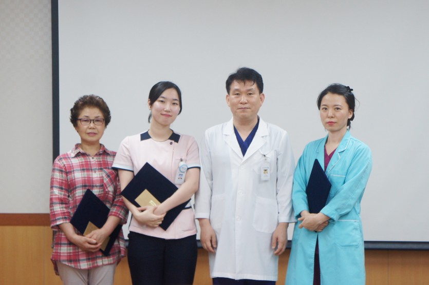 2018.7월 *우수사원&우수팀 시상* 페이지 정보 작성자 미즈아이 댓글 0건 조회 6,858회 작성일 18-07-12 09:50 목록 본문 2018.7.11 수요일 본원 9층 문화센터에서는 6월 우수사원&우수팀 시상이 있었습니다. * 6월 우수사원 : 윤상아(산부인과7병동), 박일순(관리팀) * * 6월 우수팀 : 분만수술실 * 화창한 날씨처럼 밝은 미소를 지닌 선생님들의 수상을 축하드립니다 언제나 환한 미소로 최상의 서비스를 전하는 미즈아이병원이 되겠습니다. 이전글 2018.8월 *아동학대예방 캠페인* 18.08.13 다음글 2018.7월 *생일자파티* 18.07.07 댓글 0 댓글목록 등록된 댓글이 없습니다.