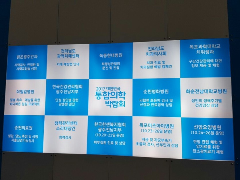 2017.10.23~26 *장흥대한민국통합의학박람회* 페이지 정보 작성자 미즈아이 댓글 0건 조회 7,208회 작성일 17-10-27 16:34 목록 본문 2017년 10월 20일(금)~26일(목) 7일간 장흥에서 2017 대한민국 통합의학박람회가 열렸습니다. 본원에서는 10월 23일(월)~10월26일(목) 4일간 나가서 각종 산부인과 관련 상담, 혈압체크, 임산부 초음파 등을 통하여 고객님들의 건강 검진을 도와드렸습니다. 앞으로도 고객님들께 유익한 정보는 물론 행복과 즐거움을 선사하도록 하겠습니다. 이전글 2017.10월 *미즈아이 추계운동회* 17.10.31 다음글 2017.10월 *09월 우수사원&우수팀 시상* 17.10.13 댓글 0 댓글목록 등록된 댓글이 없습니다.