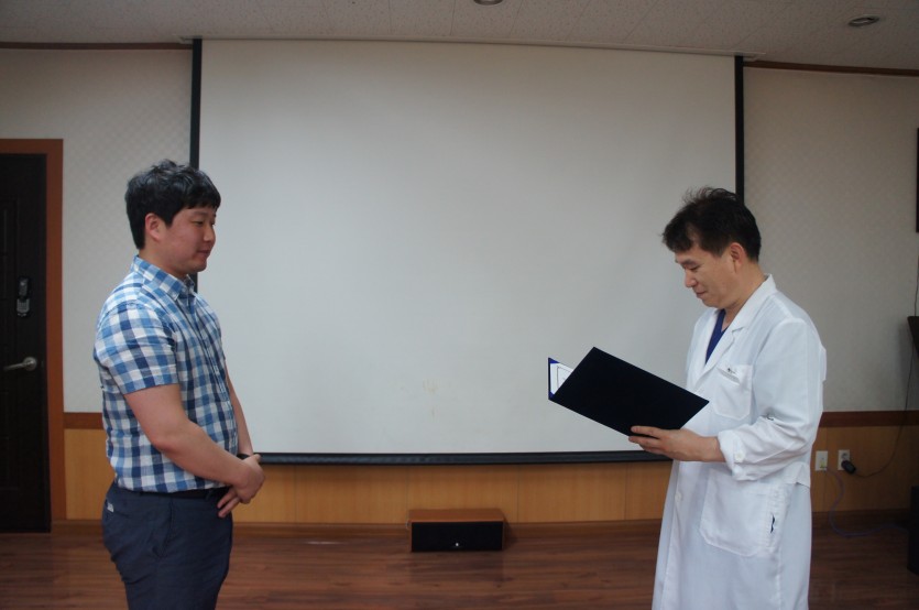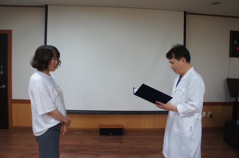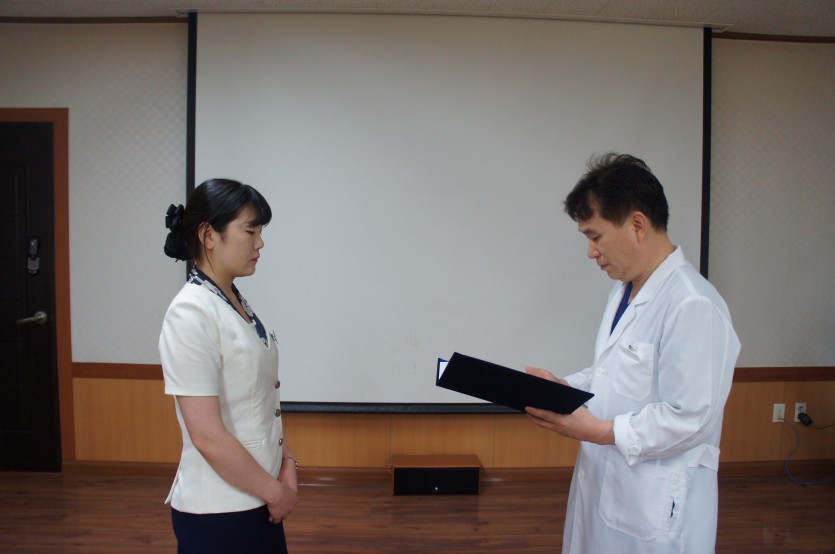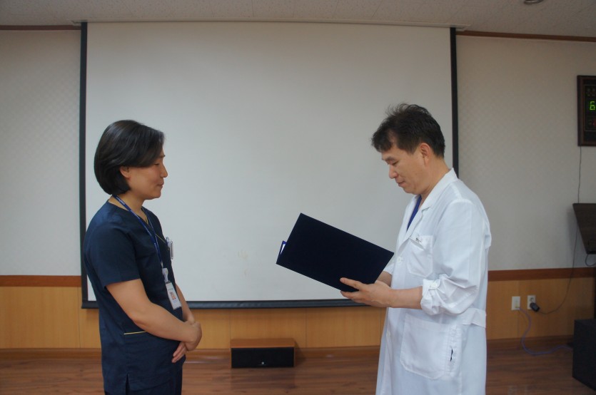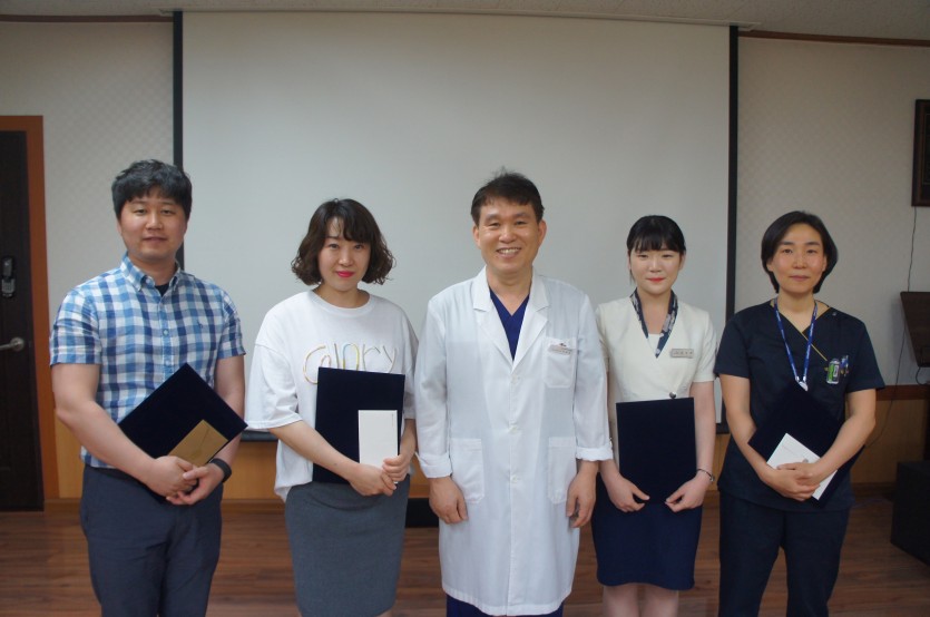 2017.06월 *04/05월 우수사원&우수팀 시상* 페이지 정보 작성자 미즈아이 댓글 0건 조회 8,271회 작성일 17-06-14 17:04 목록 본문 2017년 06월 14일 수요일 9층 문화센터에서 미즈아이병원을 빛낸 미소천사 우수사원 & 우수팀 시상식이 있었습니다 *4월 우수사원: 문선화(총무팀), 우수팀: 영상의학과*5월 우수사원: 양영일(관리팀), 우수팀: 신생아실 앞으로도 예쁜 미소와 친절을 더하는 미즈아이병원이 되겠습니다.^^ 이전글 2017.06월 *생일자파티* 17.06.23 다음글 2017.06월 *목포MBC 임신육아교실* 17.06.13 댓글 0 댓글목록 등록된 댓글이 없습니다.