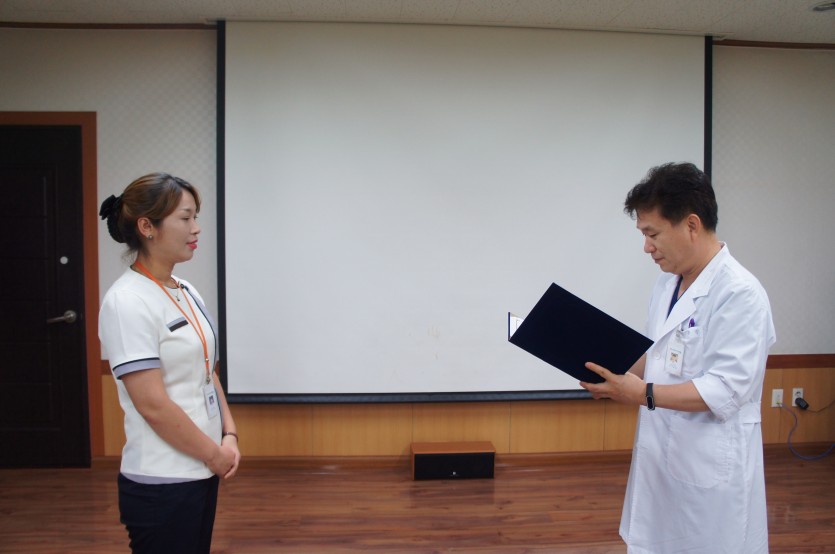 2017.09월 *07/08월 우수사원&우수팀 시상* 페이지 정보 작성자 미즈아이 댓글 0건 조회 7,900회 작성일 17-09-14 15:30 목록 본문 2017년 09월 13일 수요일 9층 문화센터에서우수사원 & 우수팀 시상식이 있었습니다.*07월 우수사원 : 박경선(소아청소년과 5병동), 박민지(진단검사의학과)우수팀 : 산부인과 외래*08월 우수사원 : 정주리(소아청소년과외래), 박소현(소아청소년과 5병동), 배경미(산부인과 7병동)우수팀 : 소아청소년과 외래앞으로도 기쁨 주고 사랑 받는 미즈아이 임직원들이 되기를 바랍니다. 이전글 2017.09월 *등산 동호회 오르지오 '영광군 불갑산'* 17.09.19 다음글 2017.09월 *인사고과교육* 17.09.06 댓글 0 댓글목록 등록된 댓글이 없습니다.