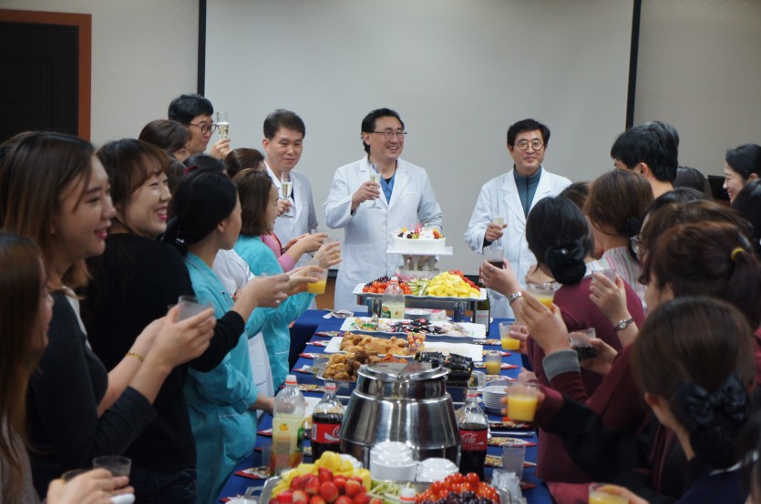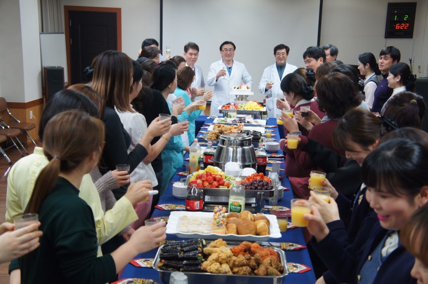 2017.01월 *시무식* 페이지 정보 작성자 미즈아이 댓글 0건 조회 9,137회 작성일 17-01-03 17:12 목록 본문 2017년 붉은 닭의 해 정오년 새해가 밝았습니다.2017년 1월 2일 월요일 본원에서는 새해의 시작과 함께 새로운 마음가짐과한 해의 업무를 시작하는 차원에서 시무식을 마련했습니다.이양구 대표원장의 신년사를 시작으로2016년 경과보고와 우수사원&우수팀 시상, 임명식을 가졌습니다.원장들을 비롯하여 부서장들과 팀원들이 모여새해 덕담과 서로의 사기를 북돋아주었습니다.영양팀에서 마련한 다과음식과 산부인과 김동호원장의 건배제의를 함으로써미즈아이 전직원의 힘찬 함성과 함께 마무리했습니다. 신년에는 고객님들의 가정에 평안과 행복이 충만하기를 바라겠습니다. 이전글 2017.01월 *생일자파티* 17.01.09 다음글 2016.12월 *불우이웃돕기 성금 기탁* 16.12.27 댓글 0 댓글목록 등록된 댓글이 없습니다.