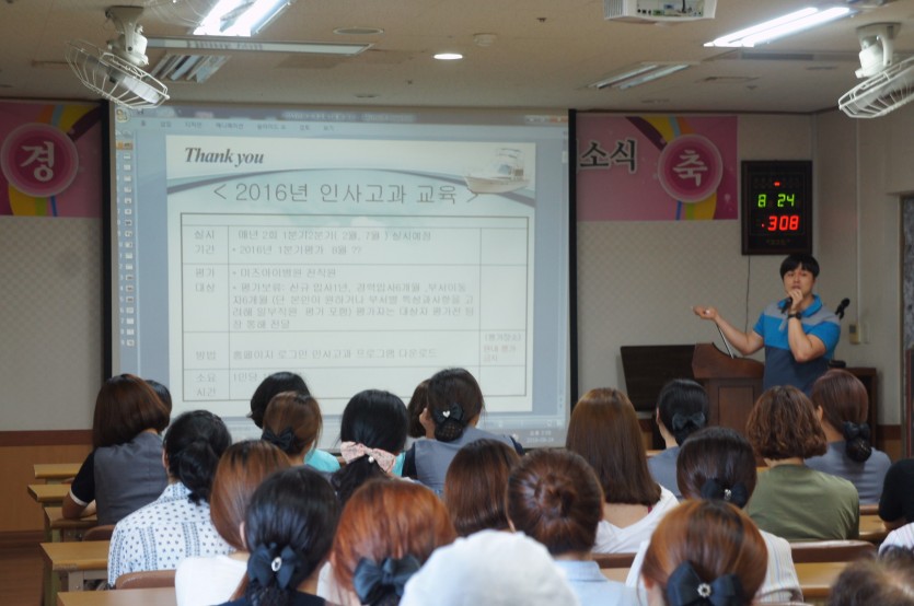 2016.08월 *인사고과교육* 페이지 정보 작성자 미즈아이 댓글 0건 조회 10,544회 작성일 16-08-25 15:22 목록 본문 2016년 08월 24일 전직원을 대상으로총무팀 박윤수 계장이 인사고과 교육을 실시하였습니다.12시와 15시 두 차례에 걸쳐인사고과의 필요성과 실시방법 및 주의사항과개인정보보호법 등에 관하여 설명하는 시간을 가졌습니다. 아직 남아있는 늦여름의 따가운 햇살에 건강관리 유의하시기 바랍니다. 이전글 2016.08월 *07월 우수사원&우수팀 시상* 16.08.29 다음글 2016.08월 *생일자파티* 16.08.18 댓글 0 댓글목록 등록된 댓글이 없습니다.