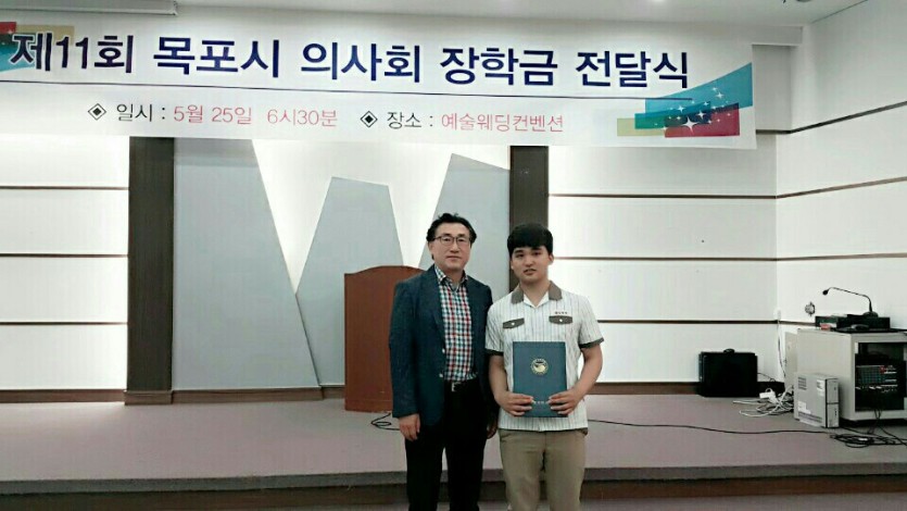 2016.05월 *목포시 의사회 장학금 전달식* 페이지 정보 작성자 미즈아이 댓글 0건 조회 10,343회 작성일 16-05-31 14:15 목록 본문 2016.05.25일 수요일 예술웨딩컨벤션에서목포시 의사회에서는 장학금 전달식을 가졌습니다.본원 이양구 원장님께서 참석하여목포 마리아회고등학교 3학년에 재학중인 박진안 학생에게 장학금을 전달하였습니다. 본원은 앞으로도 목포시 인재육성에 도움을 주고학생들의 용기를 북돋아주고 꿈을 펼칠 수 있도록 응원하겠습니다. 이전글 2016.06월 *장흥군 보건소* 16.06.02 다음글 2016.05월 *전남 도청 비둘기 어린이집 견학* 16.05.30 댓글 0 댓글목록 등록된 댓글이 없습니다.
