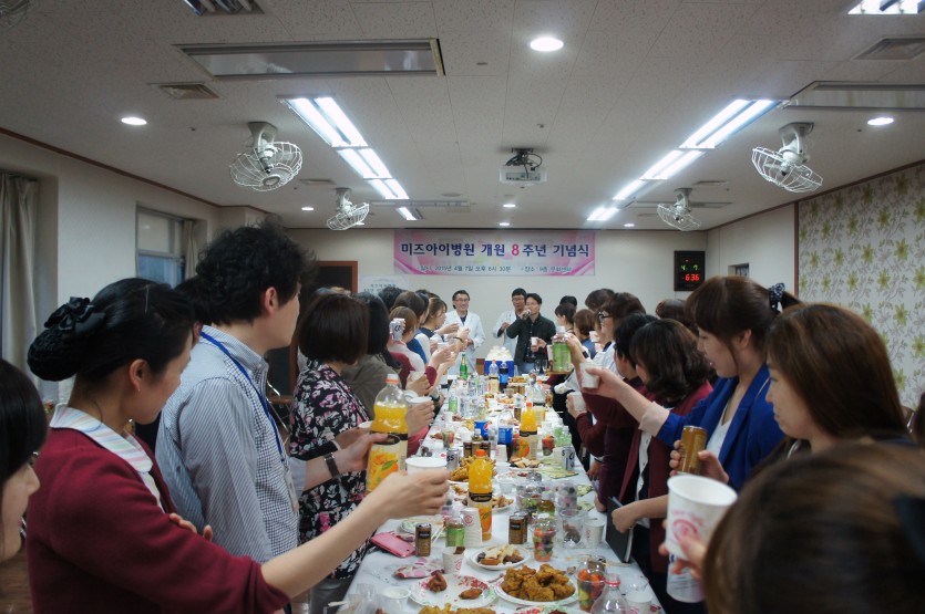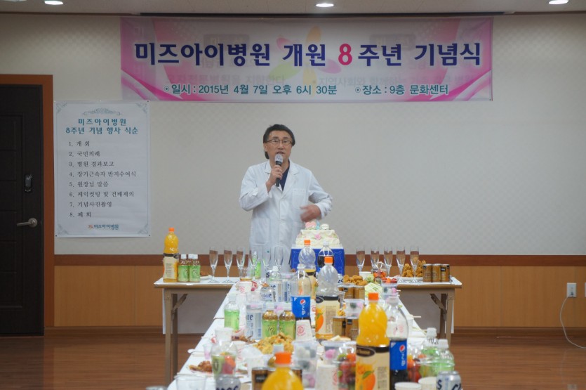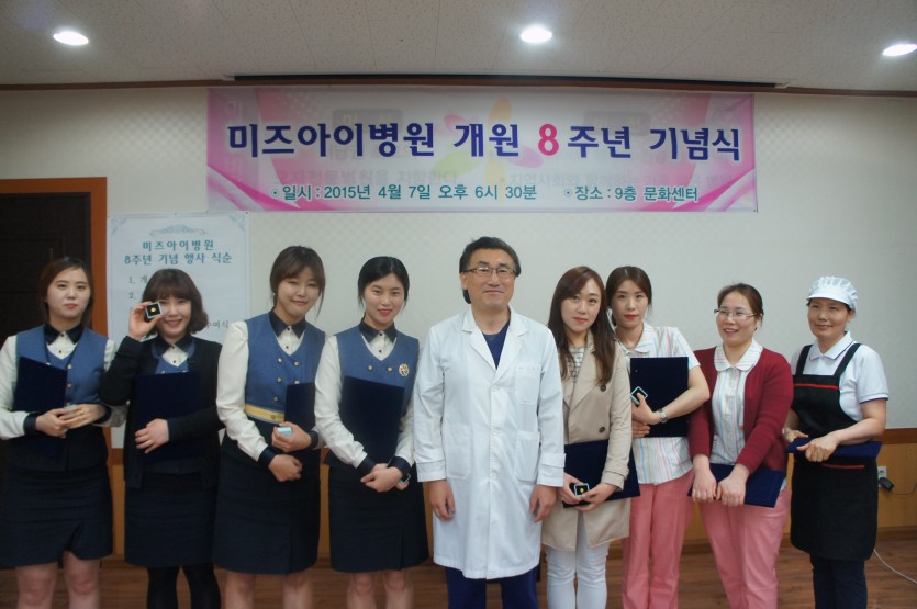 2015.04월 *개원 8주년 기념행사* 페이지 정보 작성자 관리자 댓글 0건 조회 14,759회 작성일 15-04-09 15:09 목록 본문 본원은 개원 8주년을 기념하여 원장님들과 직원들을 모시고 '개원 8주년 기념행사'를 갖었습니다. 이갑식 총무국장의 병원경과보고를 시작으로 이양구 대표원장님께서 장기근속자에게 상장과 금반지를 수여하였으며 참여해주신 원장님들과 부서장들이 함께 해준 직원들과 고객들에게 감사의 마음을 전하고 격려하는 등.. 자축하는 시간을 갖었습니다.이어서, 더욱 더 발전할 미즈아이병원을 위한 케익컷팅식을 가졌으며, 마지막 이의호 총무원장님의 건배제의로 한마음으로 함께 화이팅 외치며 개원 8주년 기념행사를 마쳤습니다. 이전글 2014.04월 *생일자파티* 15.04.11 다음글 2015.03월 *전직원 친절교육 및 01/02월 우수사원&우수팀 시상* 15.03.12 댓글 0 댓글목록 등록된 댓글이 없습니다.