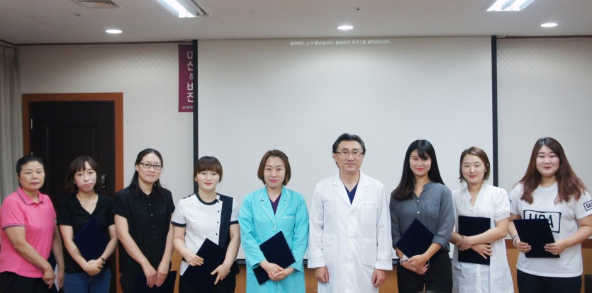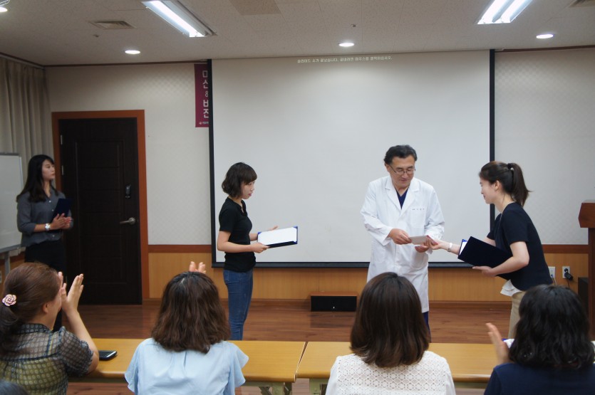 2014.08월 *인사고과교육 및 05/06/07월 우수사원&우수팀 시상* 페이지 정보 작성자 관리자 댓글 0건 조회 15,047회 작성일 14-08-21 09:48 목록 본문 2014.8월 20일/27일 '2014년 상반기 인사고과 평가'를 앞두고전직원을 대상으로 객관적이고 올바른 평가를 하기 위한 주의사항 및 방법 등과8월 7일부터 시행된 '개인정보 보호법'에 관하여총무팀 박윤수 계장이 교육을 실시하였습니다.이어서, 이양구 대표원장님을 모시고 우수사원 우수팀 시상식을 갖어축하의 자리를 마련하였습니다.(5월 우수사원 : 원무팀-강지혜, 소아청소년과 4병동-김하진우 수 팀 : 신생아팀6월 우수사원 : 신생아팀-김서원, 산부인과 7병동-박현정 우 수 팀 : 소아청소년과 외래7월 우수사원 : 관리팀-임추숙, 분만수술실-유초롱 우 수 팀 : 소아청소년과 외래 이전글 2014.08월 *생일자파티* 14.08.23 다음글 2014.08월 *굿네이버스 '아동학대예방극' 공연* 14.08.12 댓글 0 댓글목록 등록된 댓글이 없습니다.