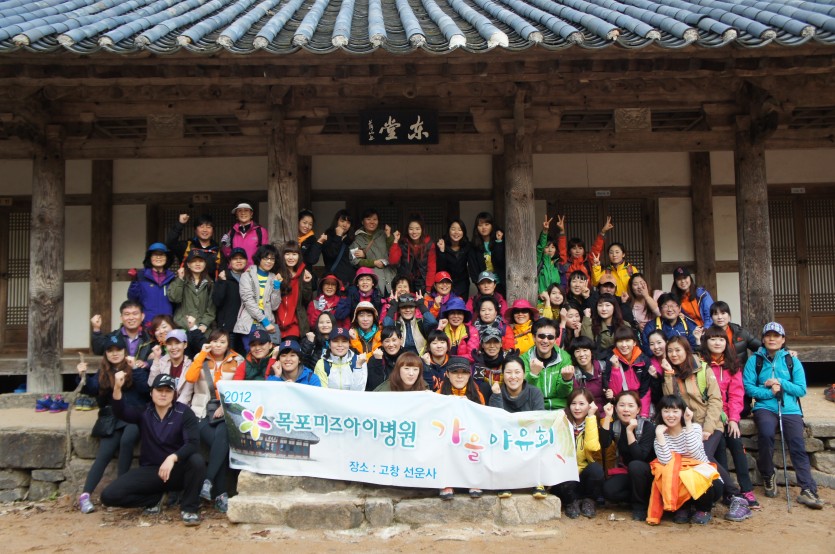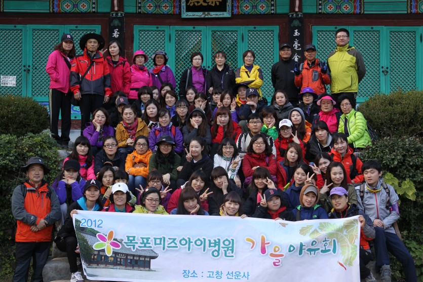 2012.11월 *미즈아이병원 전직원 추계 야유회* 페이지 정보 작성자 관리자 댓글 0건 조회 13,072회 작성일 12-11-01 16:11 목록 본문 전라북도 고창군 아산면에 위치한 선운사에 아름답게 물든 단풍들과 풍경을 보며 그동안의 스트레스를 풀고직원간의 친목을 도모하고자, 전직원 추계야유회를 다녀왔습니다. 이전글 2012.11월 *병원 및 삼향천 가꾸기* 12.11.17 다음글 2012.10월 *목포MBC 임신육아교실* 12.11.01 댓글 0 댓글목록 등록된 댓글이 없습니다.