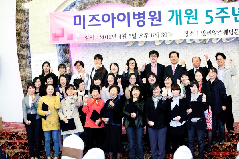 2012.04월 *개원 5주년 기념행사* 페이지 정보 작성자 관리자 댓글 0건 조회 13,082회 작성일 12-04-06 14:52 목록 본문 ◆ 미즈아이병원(대표원장 오관철)이 개원 5주년을 맞이하여 4월 5일(목) 개원5주년 기념식을 시행하였다. ◆ 2007년 개원이래, 지역주민의 진료사업이외에 인재양성을 위해 매년 장학금(1000~1500만원 상당) 지급. 매년말 방송3사에 불우이웃돕기 성금 기탁. 목포시 주재 복지관 및 영아원에 물품 기증. 아름다운가게 바자회 개최. 많은 지식과 정보를 제공하고자 매월 임신육아교실 개최. 매월 셋째주 수요일을 ‘병원주변가꾸기‘의 날로 지정해 그 일환으로 삼향천 청소. 각종 행사에 의료봉사 지원 등 지역사회 이바지하기 위하여 노력하였다. ◆ 우수사원.우수팀 표창 매 월 전직원을 대상으로 친절사원 추천을 통해 우수사원과 우수팀을 선정하여 시상하는데, 2월 우수사원은 소아청소년과 4병동1팀 김민애, 소아청소년과 5병동2팀 이누리, 3월 우수사원은 산부인과 외래2팀 이기쁨이 선정되었으며, 2월 우수팀- 소아청소년과 4병동1팀, 3월 우수팀 - 원무팀이 선정되었다. ◆ 장기 근속상 표창 미즈아이병원은 개원5주년을 맞이하여 근속 5년 이상 직원에게 장기 근속상 표창 및 부상으로 금반지 2돈(60만원 상당)을 지급하였다. - 전 직원 150여명 중 약 25%인 38명이 수상하였으며, 내년에도 약 30명이 대상예정이고, 병원 애사심 향상 및 장기근속자 우대 차원에서 향후에도 계속 지속할 계획이다. ◆ 오관철 대표원장은 기념사에서 ’오늘에 있기까지 성원해주신 고객님께 깊이 감사드린다‘며 ’본원은 편리하고 다양한 의료서비스를 제공하기 위해 3월 외과전문의 신혜승(여의사)원장을 초빙하여 일반외과 진료를 개시하였다. 고객님께 보답하고자 앞으로도 사회적 책임을 다하며, 지역주민의 보건향상에 더욱 힘쓰겠다‘고 말했다. 이전글 2012.04월 *전직원 친절교육* 12.04.18 다음글 2012.03월 *생일자파티* 12.03.30 댓글 0 댓글목록 등록된 댓글이 없습니다.