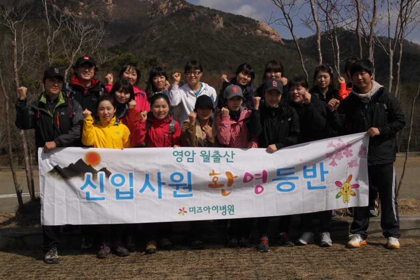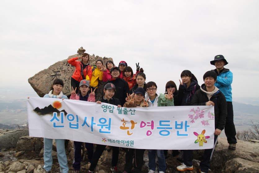 2012.02월 *신입사원 월출산 환영등반* 페이지 정보 작성자 관리자 댓글 0건 조회 12,858회 작성일 12-03-02 17:27 목록 본문 봄비로 봄을 재촉하는 2월 마지막날미즈아이병원 산악회인 "오르지오"에서는 신입사원들의 단합과 격려을 위한 "월출산 등반"이 있었습니다.출발하기전 다들 모여서 화이팅'을 외치며,한컷 ! 월출산~천황봉까지의 등반코스로 아직은 서리가 남아있어 미끄럽고 험난한 산행이었지만원장님과 부서장을 비롯한 선배직원은 이곳에서도 멘토가 되어서로를 잡아주고 이끌어주며~~전원 낙오 없이 정상의 기쁨과 자신감을 만끽하는 뜻깊은 시간을 갖었습니다.* 사회에 첫발을 내딘 신입직원은 사회인으로서, 의료인으로서 자랑스러운 미즈아이인으로 성장하길 기원합니다. * 이전글 2012.03월 "병원 봄맞이 대청소" 12.03.07 다음글 2012.02월 *한국 케이블TV-HBC 호남방송 소아청소년과 상담 출연* 12.02.27 댓글 0 댓글목록 등록된 댓글이 없습니다.
