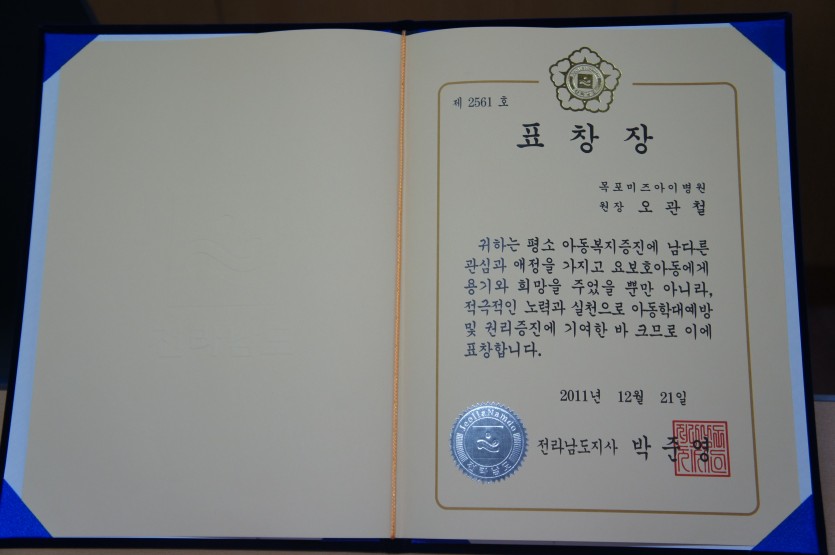 2011.12월 *전라남도지사 표창장 수상* 페이지 정보 작성자 관리자 댓글 0건 조회 12,624회 작성일 11-12-24 13:22 목록 본문 2011년 12월 14일 본원 2011 송년의 밤과 함께굿네이버스 전남목포아동보호전문기관의 김수경관장이 참석하여전라남도지사에서 주는 아동복지증진에 기여한 공로 표창장을 대표원장이신 오관철 원장님이 수상하였습니다. 이전글 2011.12월 *크리스마스 행사* 11.12.26 다음글 2011.12월 *목포MBC 임신육아교실* 11.12.23 댓글 0 댓글목록 등록된 댓글이 없습니다.