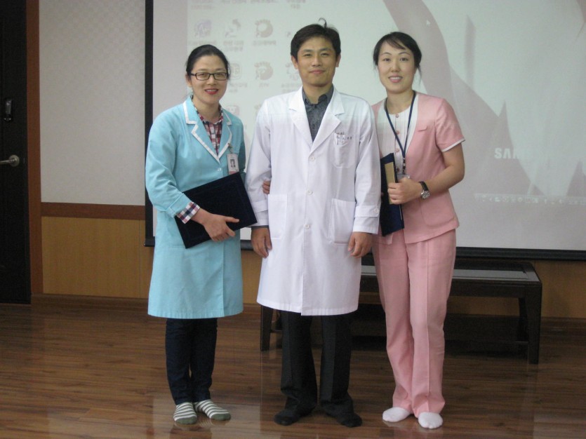 2011.05월 *4월 우수사원&우수팀 시상* 페이지 정보 작성자 관리자 댓글 0건 조회 12,395회 작성일 11-05-19 18:30 목록 본문 2011년 5월 19일(목) 오관철 원장님을 모시고,4월 우수사원 및 우수팀 시상식을 갖었습니다.우수사원은 소아청소년과 4병동 1팀의 분만휴가 중이신 김선옥선생님이 선정되어,소아청소년과 4병동 김혜미팀장님께서 대리수상하셨으며,우수팀은 질병 진단, 치료 효과 판정 등에 도움을 주는 일을 하는진단검사의학팀이 선정되었습니다.* 항상 밝은 미소로 고객님에게 다가가는 미즈아이병원이 되겠습니다.* 이전글 2011.05월 *볼링 동호회 굴리지오 야유회* 11.05.20 다음글 2011.05월 *병원 및 삼향천 가꾸기* 11.05.18 댓글 0 댓글목록 등록된 댓글이 없습니다.