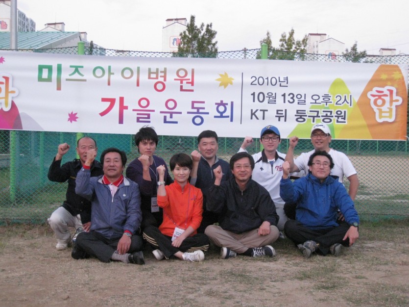 2010.10월 *미즈아이 추계운동회* 페이지 정보 작성자 관리자 댓글 0건 조회 13,296회 작성일 10-10-14 17:58 목록 본문 하늘이 높고 푸른 풍요로운 가을에 본원 옆 둥구공원에서 정신없이 바쁘게 돌아가는 일상 생활에서 잠시 벗어나 그 동안 쌓인 정신적인 스트레스를 풀고, 직원간의 친목을 도모하고 서로 화합 하고자, 미즈아이병원 제2회 추계운동회를 개최하였습니다.이 날..강용필 대표원장님의 개회식을 시작으로,미즈아이병원 8월,9월 우수사원 시상식과준비한 다양한 경기를 통해 함께 웃고,뛰며모든 임직원이 하나가 되었습니다. * 몸도 마음도 건강한 미즈아이 병원이 되겠습니다 * 이전글 2010.10월 *08/09월 우수사원 시상* 10.10.15 다음글 2010.10월 *임명장 수여식* 10.10.06 댓글 0 댓글목록 등록된 댓글이 없습니다.
