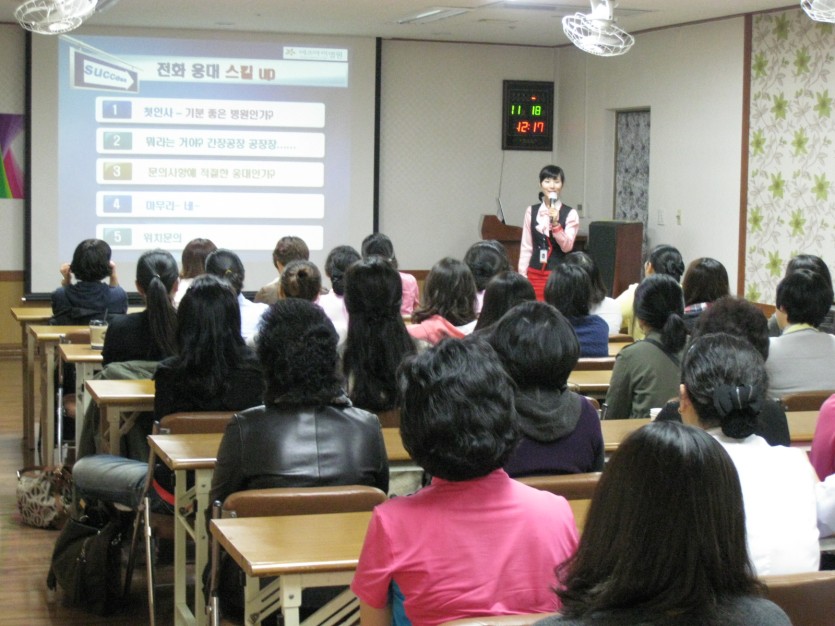 2010.11월 *전직원 친절교육* 페이지 정보 작성자 관리자 댓글 0건 조회 12,992회 작성일 10-11-13 12:22 목록 본문 고객접점의 제 1선으로서의 중요한 전화응대에 대하여고객님에게 신뢰감을 줄 수 있는 응대방법과 응대시의 금기사항등 을다시한 번 되짚어보며, 실습해보는 시간을 갖었습니다.*매 월 실시되는 CS친절교육을 통해 고객에게 한 걸음 더 다가가는 미즈아이가 되도록 더욱 더 노력하겠습니다.* 이전글 2010.11월 *생일자 파티* 10.11.13 다음글 2010.11월 *신입사원 친절교육* 10.11.05 댓글 0 댓글목록 등록된 댓글이 없습니다.
