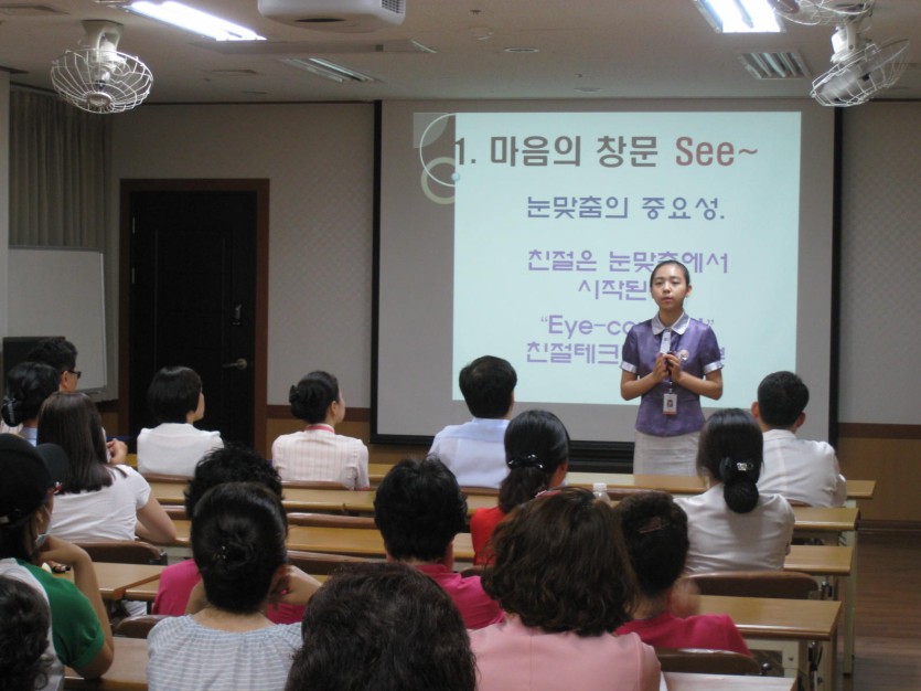 2010.06월 *전직원 친절교육 및 직무교육* 페이지 정보 작성자 관리자 댓글 0건 조회 13,870회 작성일 10-06-10 17:40 목록 본문 6월의 친절교육 주제는2010년 미즈아이병원 테마(see, smile, talk)를 가지고, 고객응대에 있어 중요한 부분을 복습하면서 직접 대표원장님이 적극적으로 실습에 임해주시어 더욱 좋은 분위기에서 교육에 집중하였습니다. 친절교육과 함께소아청소년과 4병동팀의 최선영 팀장님이 응급상황발생시 신속한 조치로 소중한 생명을 구하기 위한심폐소생술(CPR)에 대하여 직무교육을 실시하였습니다. 이전글 2010.06월 *제3회 경로효친문화행사 의료봉사* 10.06.14 다음글 2010.06월 *05월 우수사원 시상* 10.06.10 댓글 0 댓글목록 등록된 댓글이 없습니다.
