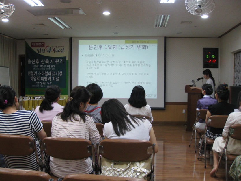 2010.06월 *목포MBC 임신육아교실* 페이지 정보 작성자 관리자 댓글 0건 조회 12,829회 작성일 10-06-15 16:26 목록 본문 ~~2010년 6월 15일(화) 오후 2시~~본원에서 목포mbc '임신육아교실' 을 개최하였습니다.이번 강의는 본원에 계시는 산부인과의 박주미원장이'출산후 산욕기 관리'라는 주제로 강의를 해주셨으며,소아청소년과의 양성완 원장이'환절기 소아알레르기성 비염의 예방과 치료'라는 주제로열띤 강의를 해주셨습니다.~~더운 날씨에도 참여해주신 고객여러분께 감사드리며,더욱 더 알찬 내용으로 또 찾아뵙겠습니다.~~ 이전글 2010.06월 *볼링 동호회 굴리지오 모임* 10.06.26 다음글 2010.06월 *제3회 경로효친문화행사 의료봉사* 10.06.14 댓글 0 댓글목록 등록된 댓글이 없습니다.