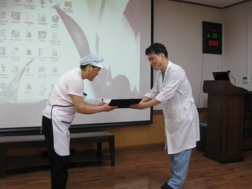 2010.05월 *04월 우수사원 시상* 페이지 정보 작성자 관리자 댓글 0건 조회 12,685회 작성일 10-05-20 17:46 목록 본문 4월의 미즈아이병원의 미소천사는...항상 입원하신 고객님들과 직원들을 위해 맛있는 음식을 해주시는영양팀의 김점남 여사님과친절하게 웃으면서 환아들에게 미소를 건내는 소아청소년과 4병동의 강수연 선생님이 되었습니다.** 미즈아이의 힘이 되는 미소가 전직원의 얼굴에도 가득하길 바랍니다.** 이전글 2010.05월 *희망유치원 미즈아이병원 견학* 10.05.26 다음글 2010.05월 *전직원 친절교육* 10.05.20 댓글 0 댓글목록 등록된 댓글이 없습니다.