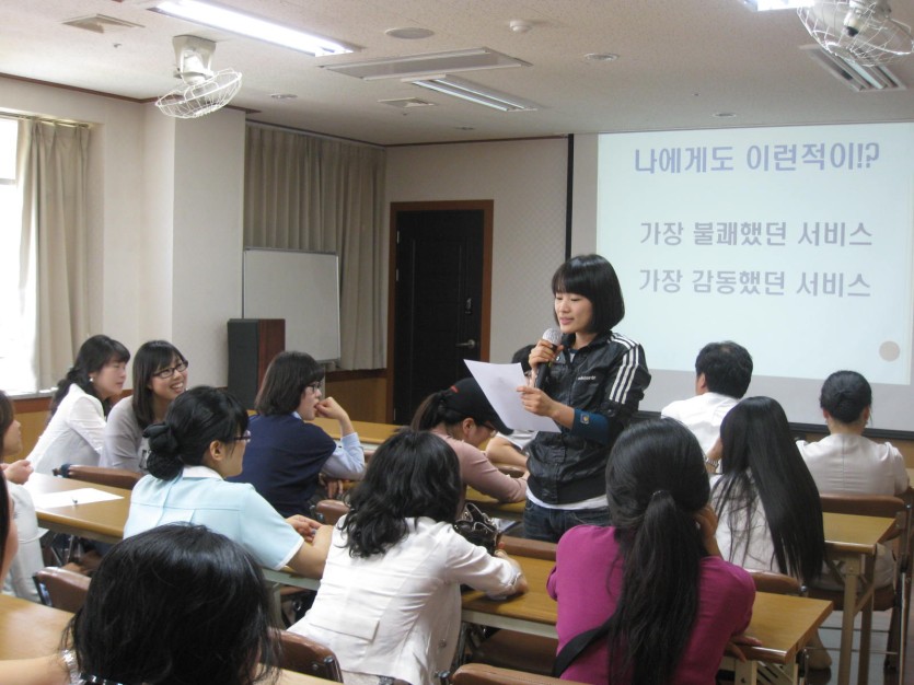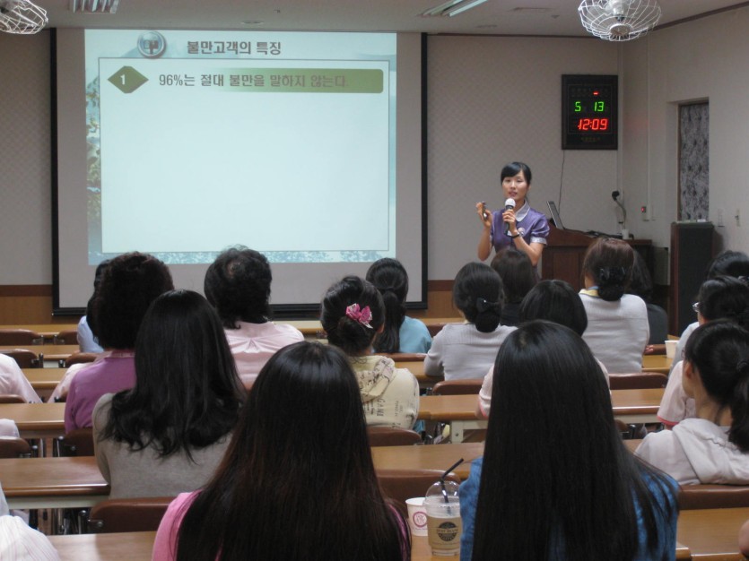 2010.05월 *전직원 친절교육* 페이지 정보 작성자 관리자 댓글 0건 조회 12,217회 작성일 10-05-20 17:20 목록 본문 이번 친절교육은 '컴플레인' 주제를 가지고,컴플레인 응대시.. 가장 기본이 되는 'HEAT기법'을 이용하여,현장에서 자주 발생하는 상황을 가정하여 분임 토의를 통해서로의 응대하는 방법과 대처법을 공유하고,좋은 방법들을 알아가는 시간을 갖었으며,이 날 친절교육과 함께 산부인과 외래팀-고미순 선생님의 '의료 커뮤니케이션'의 주제로 강의를 했습니다.** 컴플레인을 최소화 할 수 있도록 미즈아이병원은 친절과 미소로써 항상 최선을 다하겠습니다.** 이전글 2010.05월 *04월 우수사원 시상* 10.05.20 다음글 2010.05월 *목포아동원 방문 및 봉사* 10.05.10 댓글 0 댓글목록 등록된 댓글이 없습니다.