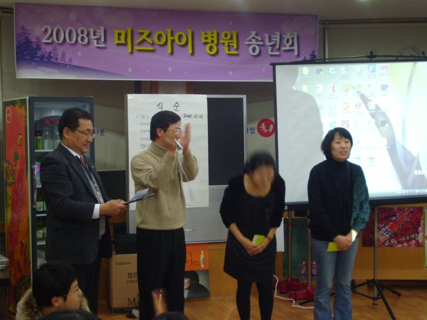 2008.12월 *미즈송년의 밤* 페이지 정보 작성자 관리자 댓글 0건 조회 15,689회 작성일 08-12-20 16:55 목록 본문 2008년을 마무리하며 '미즈아이 송년회'가 있었습니다. 2008년도 고객에게 변함없는 미소를 보여준 소아과병동 최선영 선생님.산부인과병동 이정미선생님 친절사원 수상과 한해를 되돌아본 동영상 감상, 스스로 신년을 기약하는 시간을 갖었습니다. 고객님의 사랑에 보답코저 다가오는 신년에도 더 노력하는 미즈아이가 되겠습니다. 이전글 2008.12월 *크리스마스 작은 음악회* 08.12.20 다음글 2008.12월 *생일자파티* 08.12.09 댓글 0 댓글목록 등록된 댓글이 없습니다.