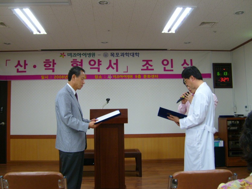 2008.06월 *목포 과학대학교와 산학협약서 조인식* 페이지 정보 작성자 관리자 댓글 0건 조회 15,569회 작성일 08-06-13 00:00 목록 본문 2008. 6. 12 미즈아이병원 9층 문화센터에서 미즈아이병원 - 목포과학대학 산학 협약서 조인식을 가졌습니다. 더불어 목포과학대학 간호과 성적우수자에게 장학금 전달식이 있었습니다. 이전글 2008.06월 *미아/유괴예방 인형단 창단식* 08.06.25 다음글 2008.06월 *미즈아이 원무과 친절교육* 08.06.13 댓글 0 댓글목록 등록된 댓글이 없습니다.