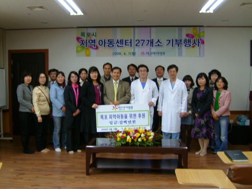2008.04월 *개원 1주년 기념 목포지역 아동센터 후원금 전달* 페이지 정보 작성자 관리자 댓글 0건 조회 14,067회 작성일 08-04-08 16:31 목록 본문 2008년 4월 7일 PM 2:00 9층 문화센터에서 개원 1주년을 맞이하여 목포지역 결손가정등 힘들고 어려운 우리 어린이들과 함께 하고자 이지역 아동센터 27개소에 후원금을 전달하였습니다. 의술뿐만 아닌 이 지역사회에 환원하며 환자중심의 열린병원 미소가 아름다운 미즈아이가 되겠습니다. 이전글 2008.04월 *산부인과 진료개시* 08.04.09 다음글 2008.03월 *생일자파티* 08.03.28 댓글 0 댓글목록 등록된 댓글이 없습니다.