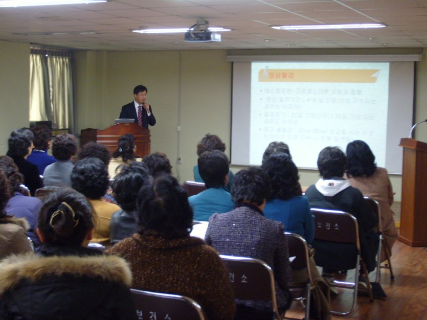 2007.12월 *해남보건소 김동호원장님 강의* 페이지 정보 작성자 관리자 댓글 0건 조회 13,889회 작성일 07-12-06 15:42 목록 본문 "폐경 여성을 위한 호르몬 요법"이라는 주제로 12월5일 해남 보건소에서 산부인과 김동호원장님 강의가 있었습니다 이전글 2007.12월 *무료 만삭사진 촬영권 드림* 07.12.06 다음글 2007.12월 *미즈아이 임신육아교실* 07.12.06 댓글 0 댓글목록 등록된 댓글이 없습니다.