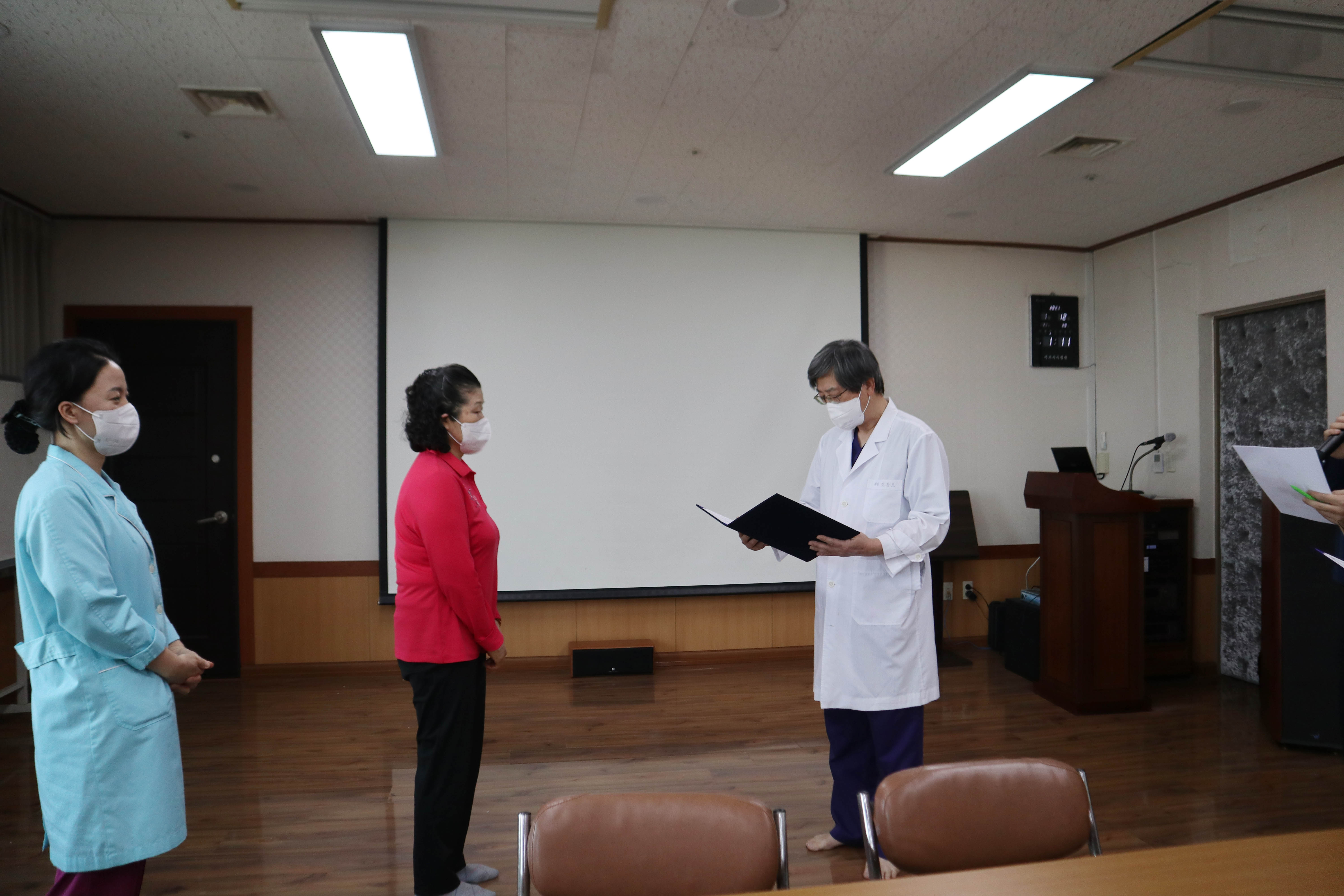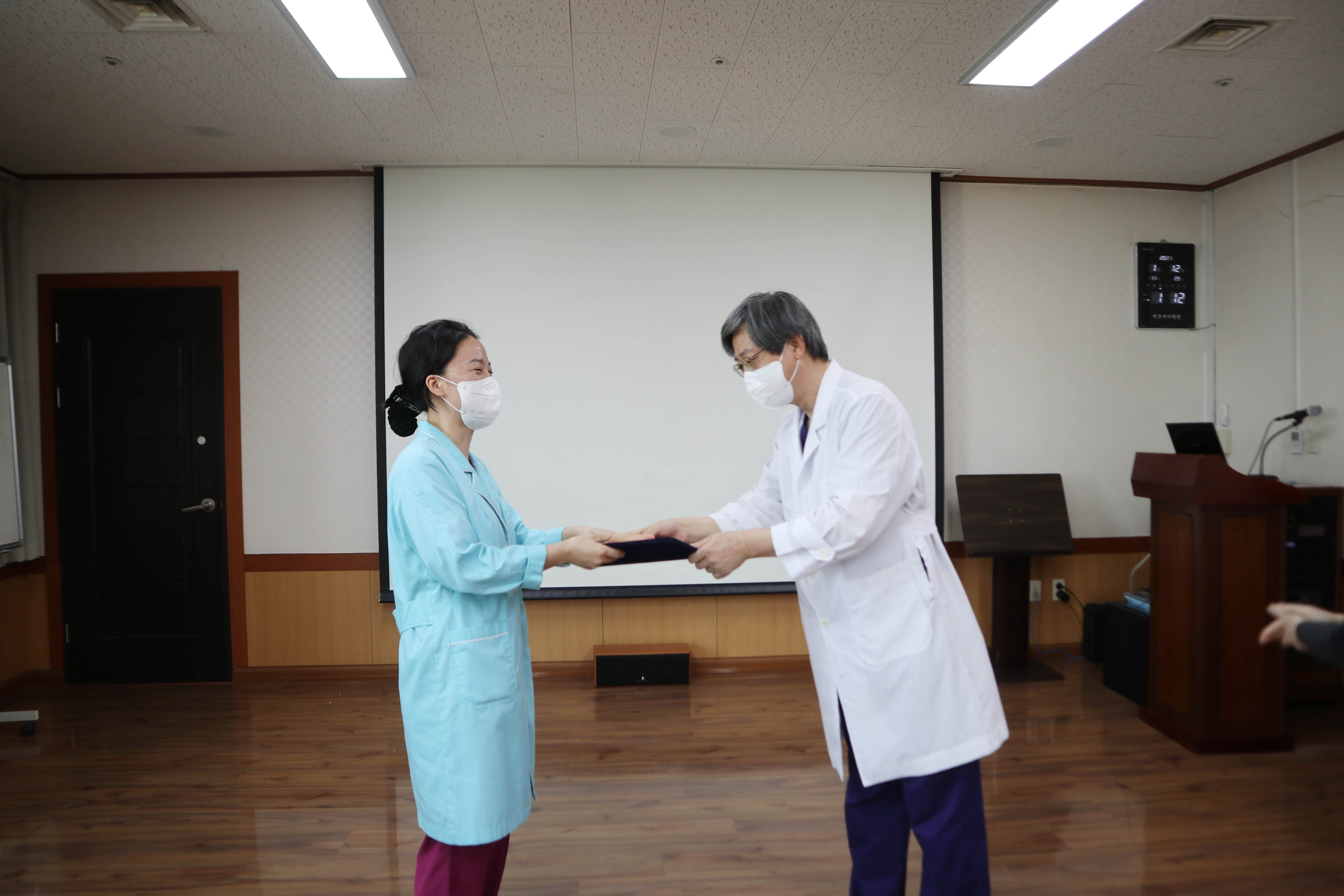 2020.12월 우수사원&우수팀 시상 페이지 정보 작성자 미즈아이 댓글 0건 조회 3,773회 작성일 21-01-12 15:33 목록 본문 2021년 01월 12일 9층 문화센터에서 12월 우수사원 및 우수팀 시상이 있었습니다. 우수사원은 언제나 한결같이 열심으로 병원을 구석구석 관리해주시는관리팀 임추*반장님 우수팀은 산모의 출산과 수술로 분주한 분만수술실에서 수상했습니다. 12월의 수상자들 축하드립니다. 이전글 2021.1월 생일자 파티 21.01.20 다음글 2020.12월 불우이웃돕기 성금 기탁 20.12.25 댓글 0 댓글목록 등록된 댓글이 없습니다.