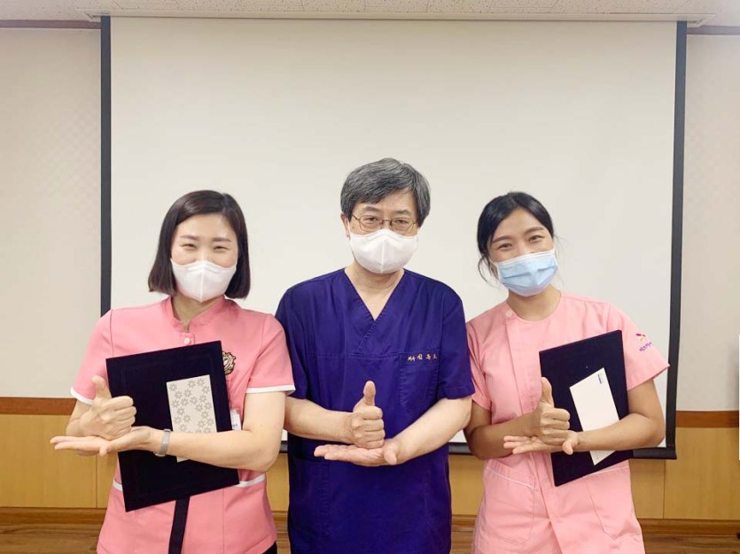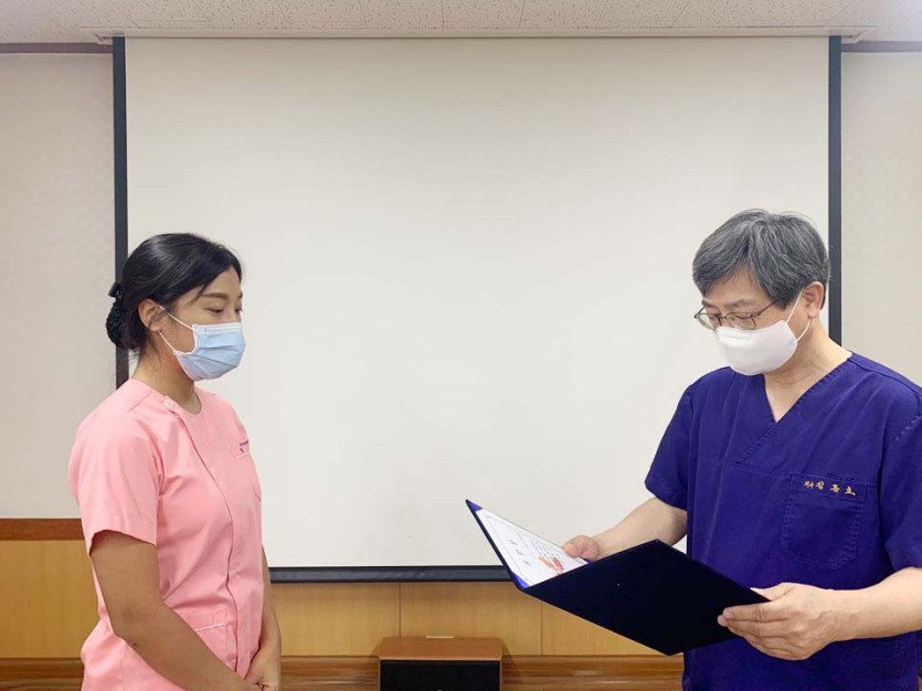 2020.07월 *우수사원&우수팀 시상* 페이지 정보 작성자 미즈아이 댓글 0건 조회 4,665회 작성일 20-07-07 16:54 목록 본문 2020년 7월 7일(화) 본원 9층 문화센터에서는 6월 우수사원&우수팀 시상이 있었습니다. * 6월 우수사원 : 윤난희(산부인과 외래) * 6월 우수팀: 진단검사의학과 더운 날씨에도 고객들에게 언제나 친절한 모습으로 대해주시는 선생님들의 수상을 축하드립니다. 올해의 절반을 새롭게 시작하는 7월입니다. 장마가 끝나면 곧 더위가 예상되는데 코로나는 끝날 것 같지 않은 모습입니다. 코로나와 마스크가 일상이 되어 답답하시겠지만 마스크와 개인위생에 신경쓰시고 항상 좋은일이 가득한 7월 되시길 바랍니다. 이전글 2020.07월 *생일자 파티* 20.07.27 다음글 2020.06월 *우수사원&우수팀 시상* 20.06.09 댓글 0 댓글목록 등록된 댓글이 없습니다.